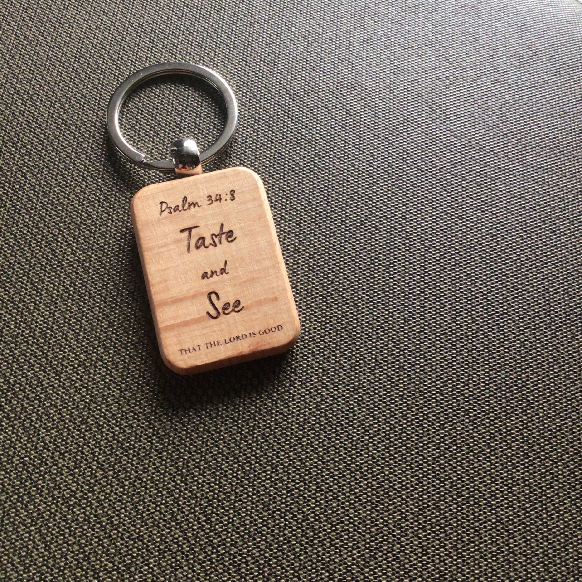 このキーホルダーは、ブナの木の自然な風合いを活かし、手に馴染む優しい手触りが魅力です。詩篇34章8節の言葉は、毎日使うアイテムとしてだけでなく、心の支えとなるメッセージをあなたに届けます。